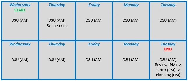 Note the minimal interruptions this schedule provides the teams, allowing them to concentrate on their work, maximizing focus time, and minimizing task switching.